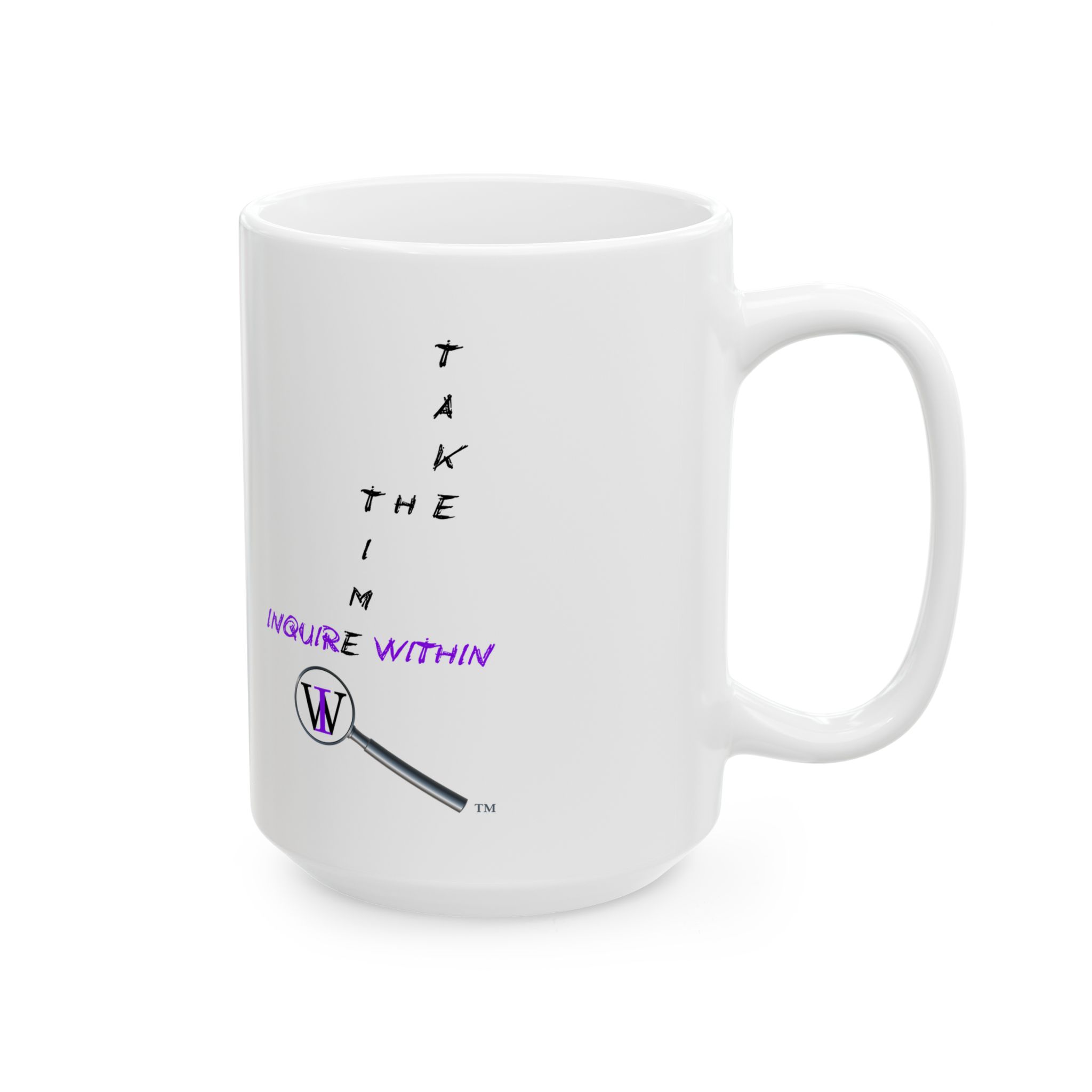 Inquire Within One of our first original slogans “Take The Time” Inquire Within. Brighten your day with this charming ceramic mug! Perfect for coffee lovers and tea enthusiasts alike, this stylish mug brings a splash of color to your morning routine. Its glossy finish and vibrant designs make it an eye-catching addition to any kitchen or office space. Whether you’re sipping your favorite beverage while starting the day or enjoying a cozy evening at home, this mug adds a delightful touch to your experience. Ideal for gift-giving on occasions like birthdays, holidays, or just because, it’s a thoughtful present for friends, family, or yourself. Celebrate your love for beverages with this must-have mug!