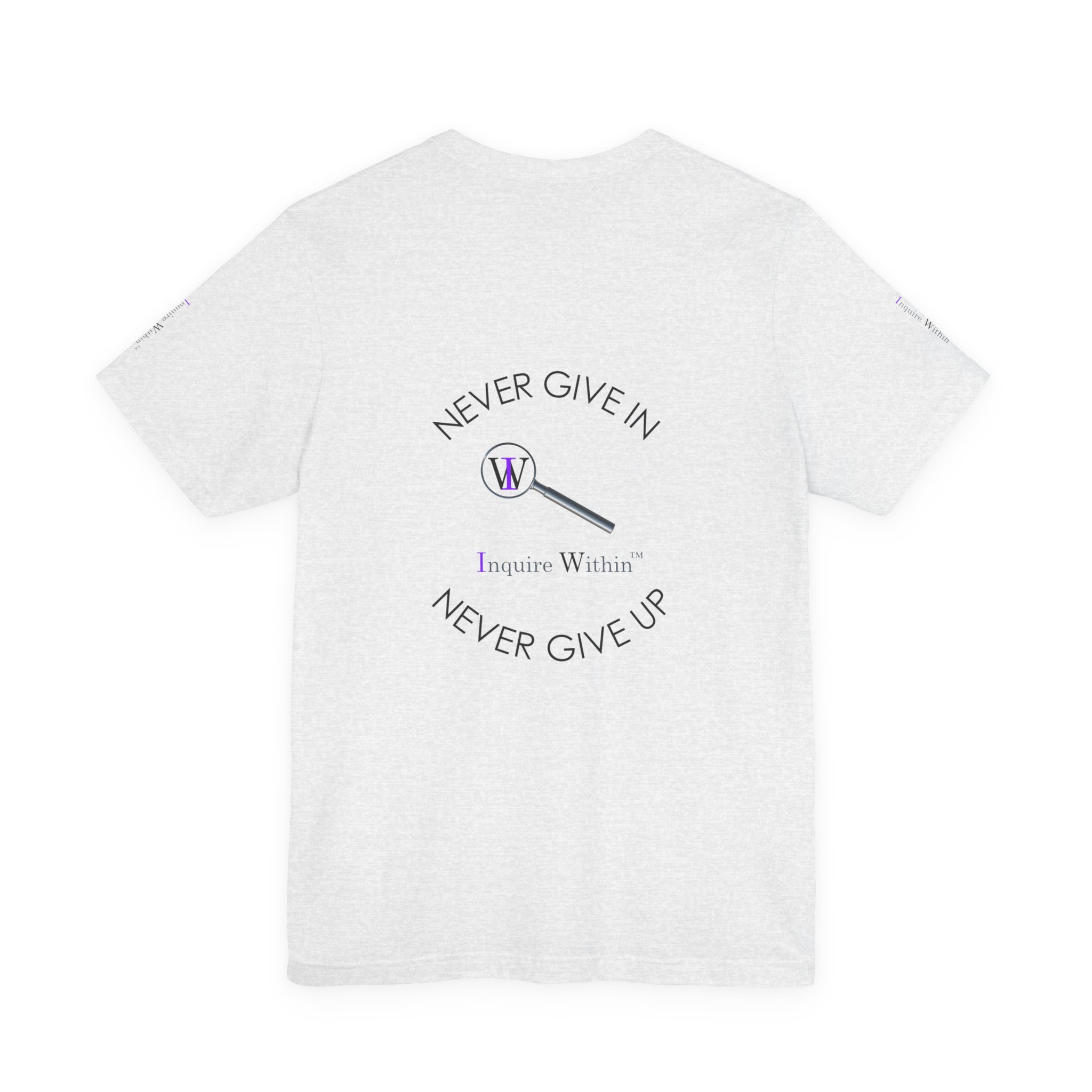 Say this shirt out loud: a quiet command wrapped in grit. The bold, all-caps message—REMEMBER TO NEVER GIVE IN, NEVER GIVE UP, YOU ALONE, DICTATE YOUR JOURNEY—lands like a personal manifesto. Worn to the gym between heavy sets, on long solo drives, or layered under a jacket on a gray morning, this tee feels like the voice in your head that keeps moving. The lightweight, breathable cotton sits close to the body without clinging, so the words stay front and center while you move through whatever the day throws at you. The clean crew neckline and retail cut make it easy to pair with worn-in jeans or a track jacket. For folks who map their own path—road-trippers, late-night creators, people rebuilding after a setback—this shirt isn’t shouting for attention. It’s a steady reminder you can read while lacing shoes, making coffee, or stepping out the door to start again.