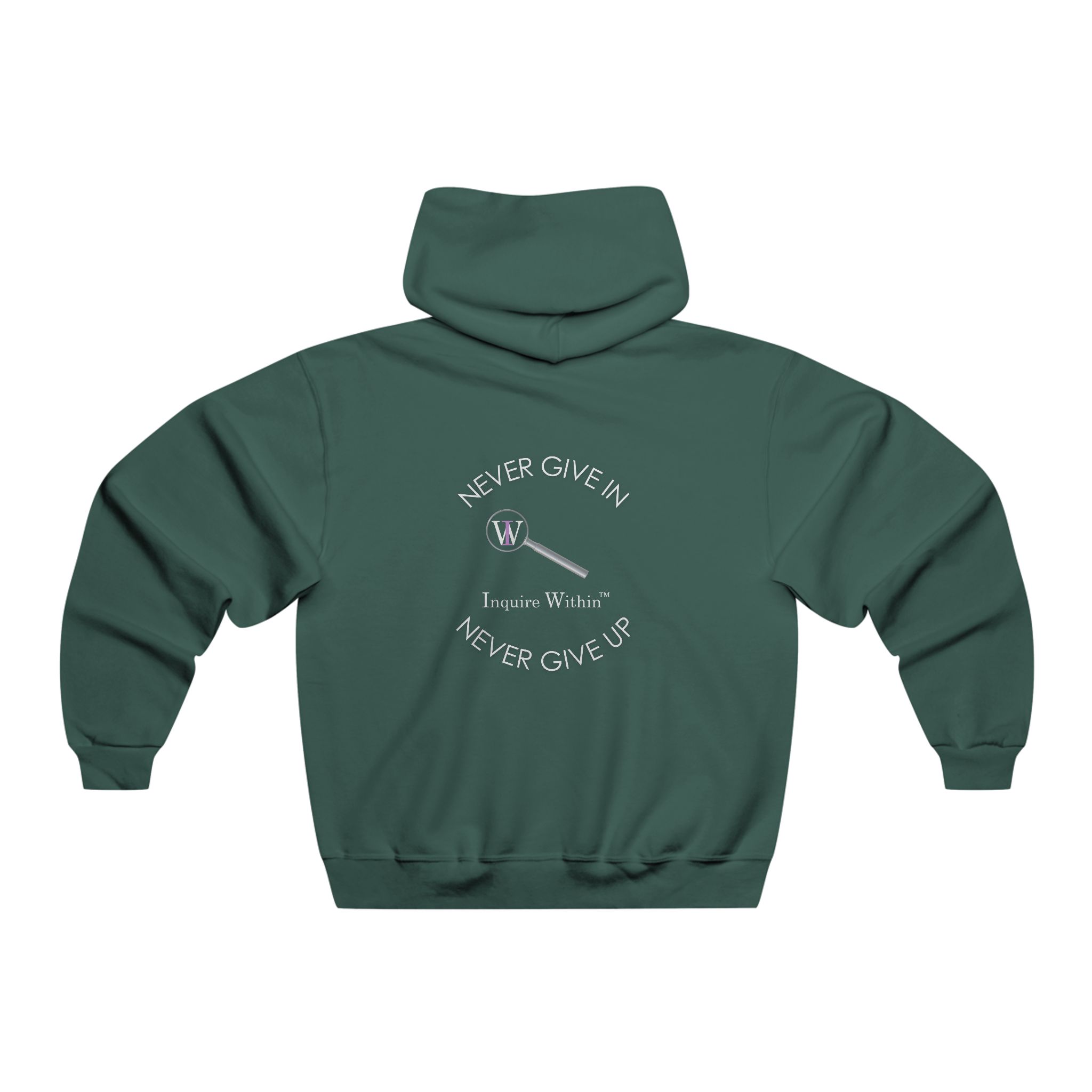 Inspirational and motivational INQUIRE WITHIN NEVER GIVE IN Men’s Hooded Sweatshirt, perfect for casual wear and fitness apparel. Cozy and comfortable for everyday wear, this hoodie is a great gift for someone who needs a little encouragement. Ideal for those who enjoy staying active and want to feel motivated while looking stylish. Relevant for birthdays, holidays, and fitness milestones.