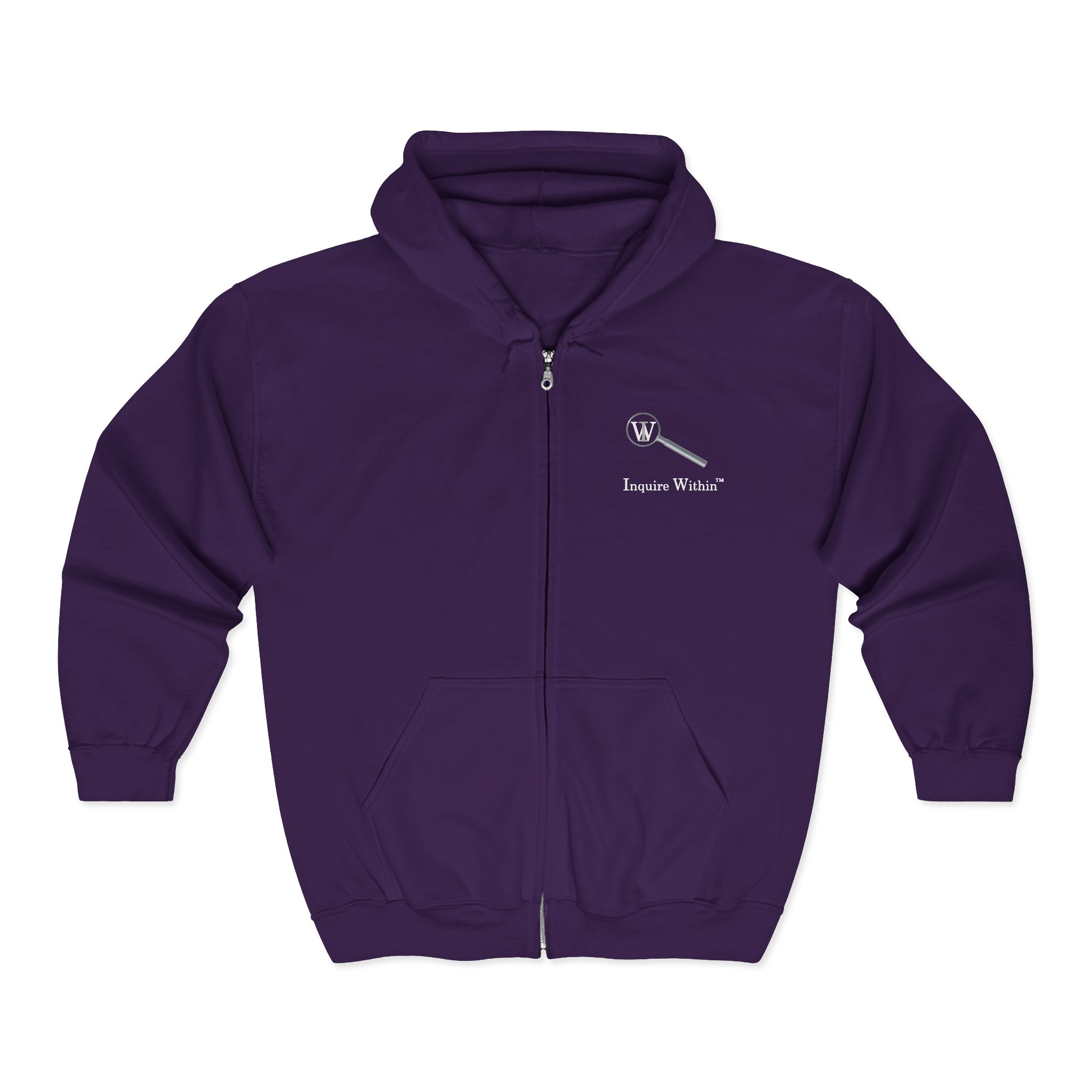This Men’s INQUIRE WITHIN Full Zip Hoodie gives off a cozy and stylish vibe, perfect for casual outings or lounging at home. It is relevant for adults looking for a comfortable and trendy sweatshirt to wear during colder months or for layering. Ideal for gifting during birthdays, holidays, or just to treat oneself.