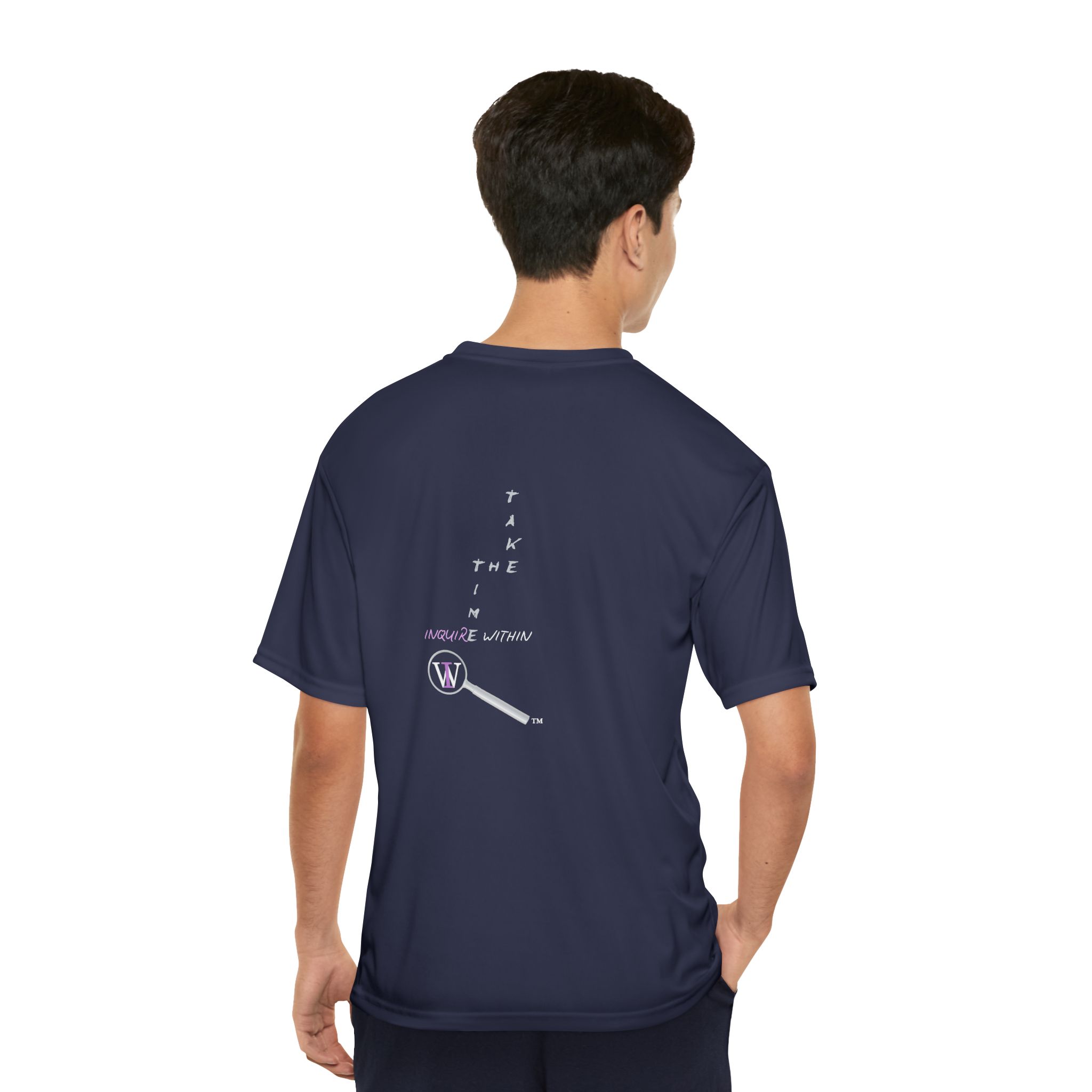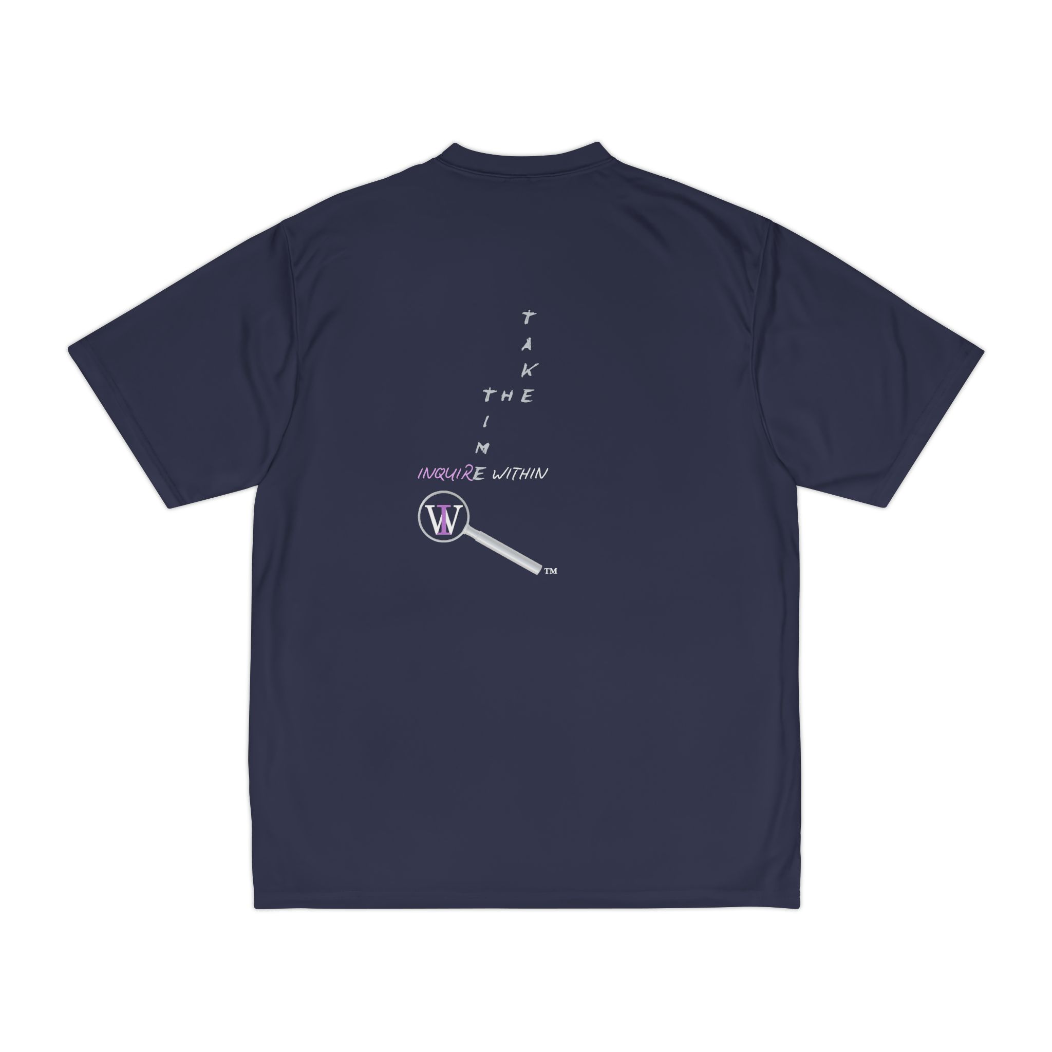 This MEN’S INQUIRE WITHIN “TAKE THE TIME” LOGO T-Shirt is a motivational performance shirt designed for athletes and fitness enthusiasts. The design features a spyglass on the left chest and a full back logo, making it a perfect workout companion. The moisture-wicking material keeps you cool and dry during any physical activity, while the double-needle stitching ensures durability. This shirt is ideal for training sessions, gym workouts, or as a gift for active individuals.