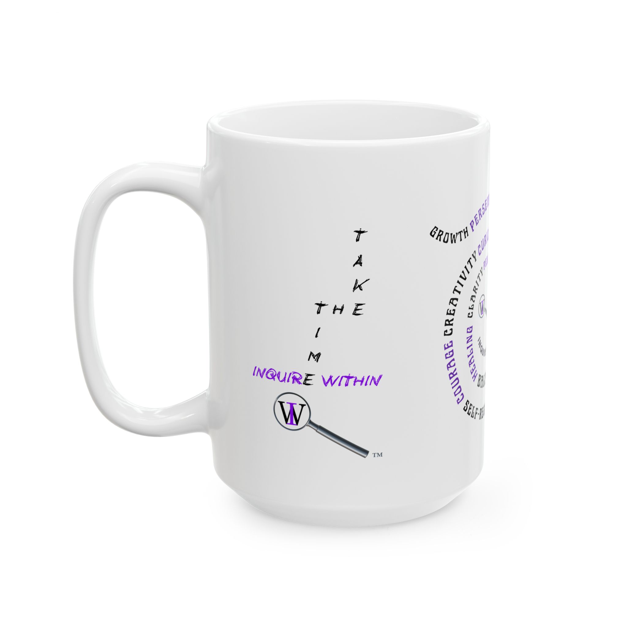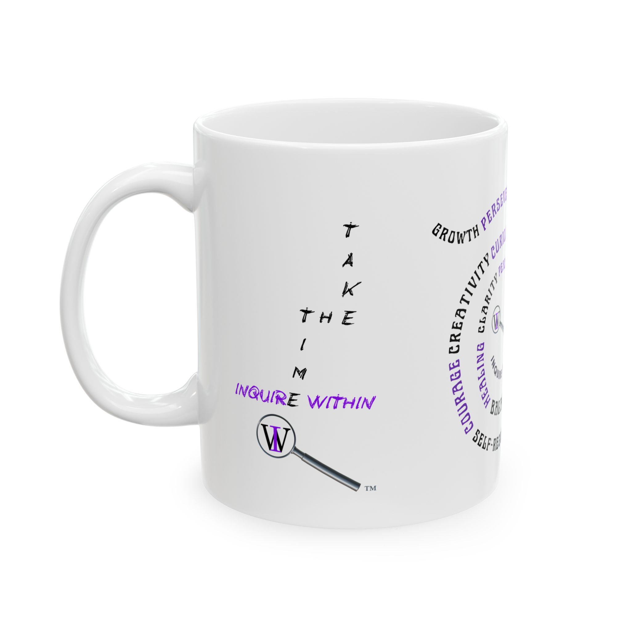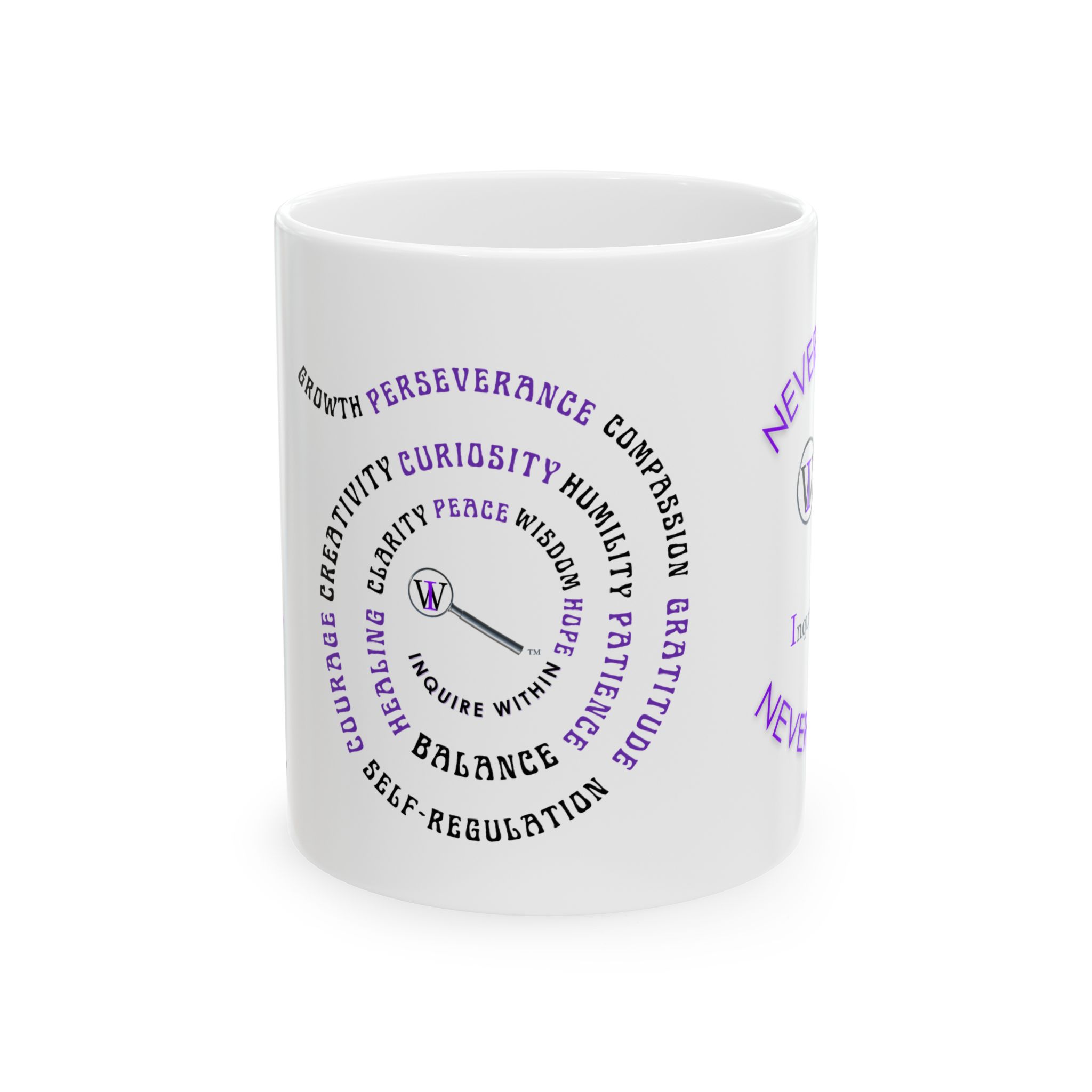 This motivational ceramic mug features the original logo’s ‘Take the time’ “Never Give In, Never Give up” and the ‘Motivational Swirl’ design. It serves as an inspirational coffee cup, perfect for daily use or as a gift for friends. The vibrant colors and motivational message create a positive vibe that fits seamlessly into anyone’s morning routine. Ideal for those seeking a daily dose of motivation and positivity.