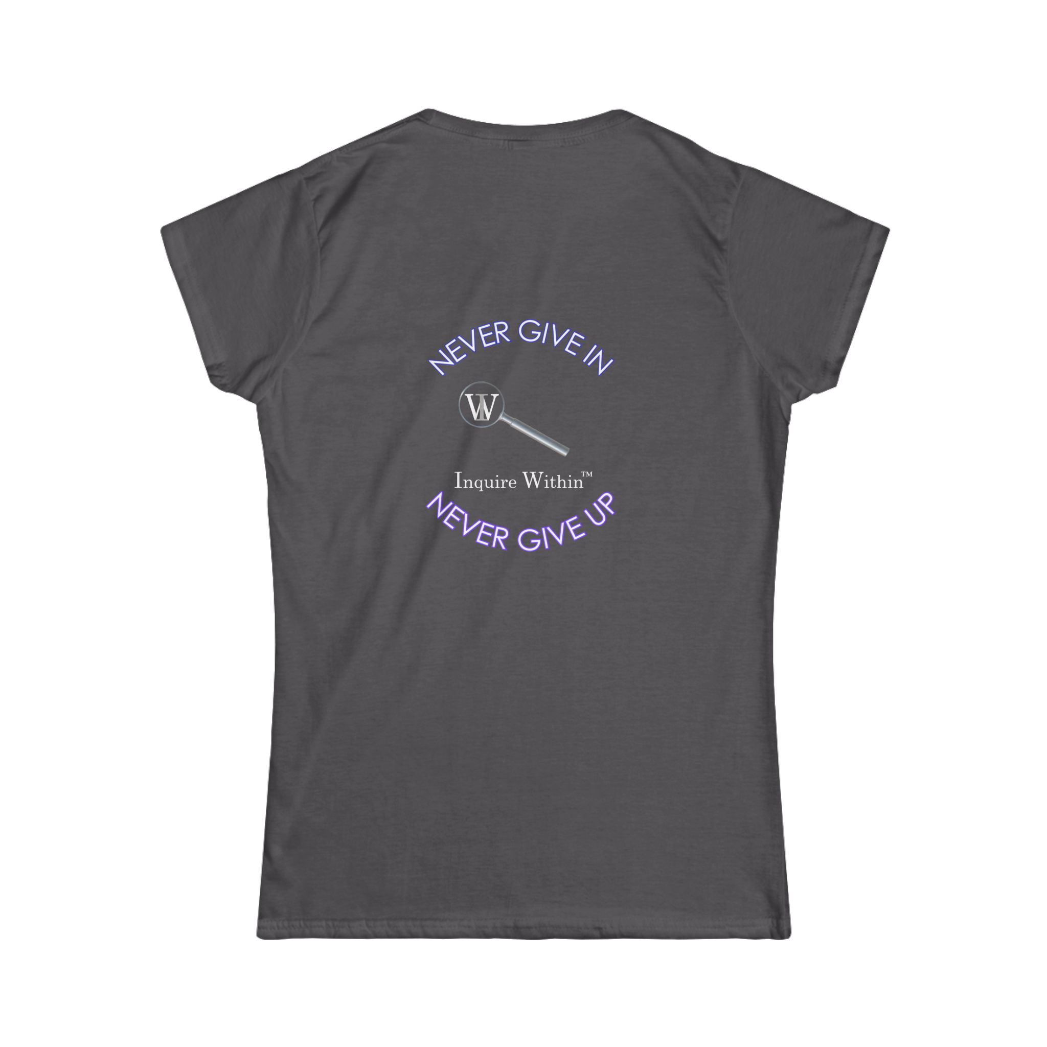Women’s Inspirational Softstyle Tee INQUIRE WITHIN “NEVER GIVE IN, NEVER GIVE UP”